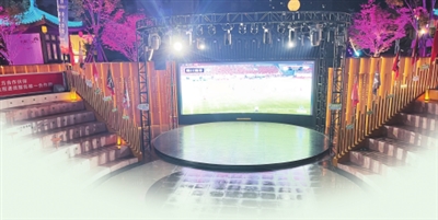 市民和游客在墨竹里街區(qū)通過大屏幕觀看川超聯(lián)賽直播。