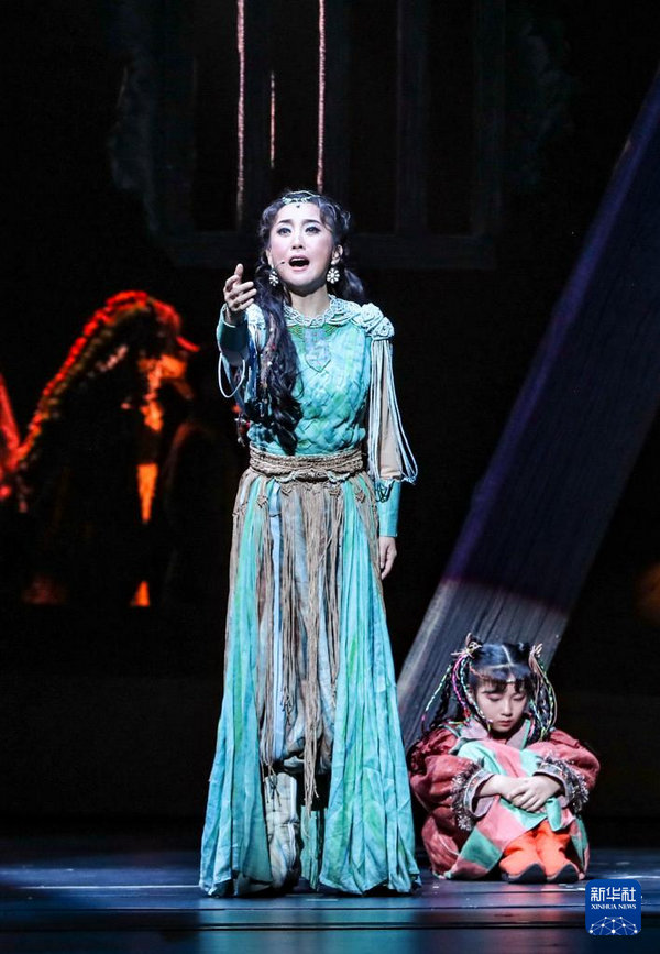 10月10日晚,演員在甘肅大劇院表演原創(chuàng)音樂劇《米薇的敦煌》。