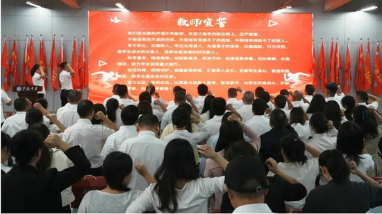 全體教師高舉右拳,集體宣誓,鏗鏘有力的誓言回蕩在會(huì)場(chǎng),不僅是對(duì)教育使命的莊嚴(yán)承諾,更是對(duì)高三備考的堅(jiān)定決心,展現(xiàn)出蘆溪中學(xué)教師隊(duì)伍“敢打硬仗、能打勝仗”的精神風(fēng)貌。