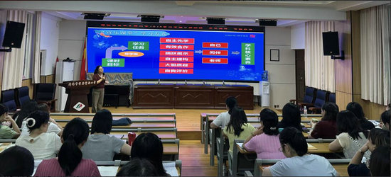 蔣莉老師圍繞“小組合作學(xué)習(xí)策略”從小組合作的意義地位、分組方法、團(tuán)隊(duì)組織、合作流程等維度進(jìn)行了分享。提供了可直接落地的教學(xué)方案。她指出,小組合作是激發(fā)學(xué)生學(xué)習(xí)興趣、培養(yǎng)合作能力、提升思維與表達(dá)能力、深化文本理解的關(guān)鍵路徑,最終目標(biāo)是實(shí)現(xiàn)“一個(gè)都不能少”的全員發(fā)展;針對(duì)語文學(xué)科特點(diǎn),她特別提到小組合作可重點(diǎn)應(yīng)用于讀寫教學(xué),習(xí)作課可采用“車輪式小組合作”,通過組員輪流分享、補(bǔ)充修改,提升習(xí)作質(zhì)量。