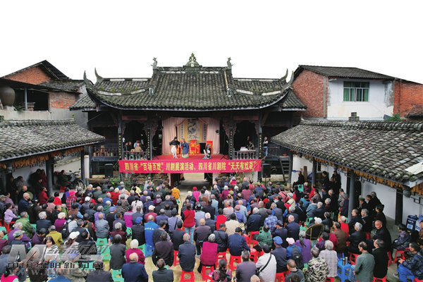 四川省“百場百戲”川劇展演走進(jìn)江油重華古鎮(zhèn),演出現(xiàn)場座無虛席。