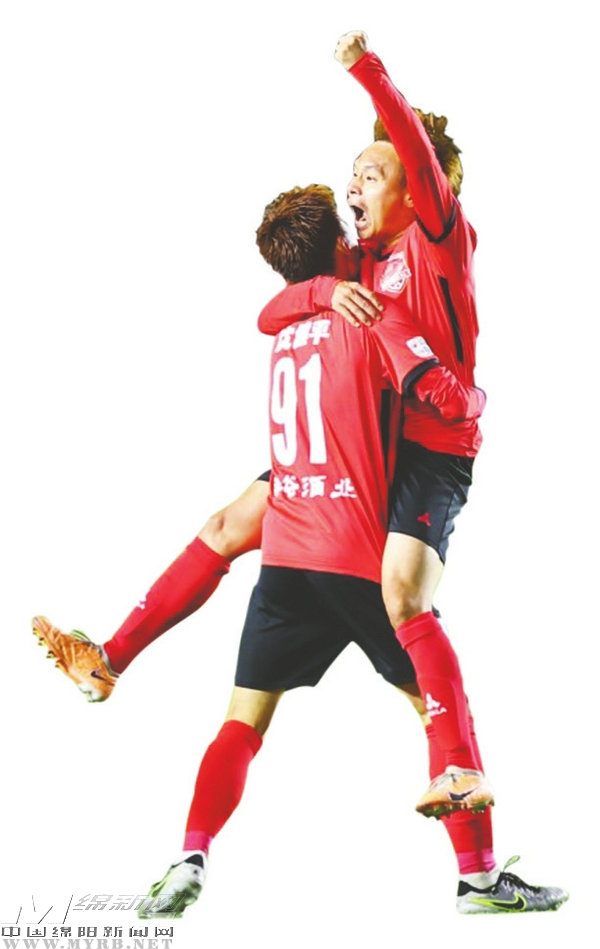 沈健平(左)與隊(duì)友慶祝進(jìn)球