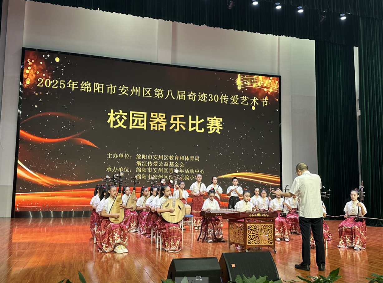 10月16日上午,2025年安州區(qū)第八屆奇跡30傳愛藝術(shù)節(jié)校園器樂比賽在沙汀實驗小學(xué)演播廳圓滿落幕。安州區(qū)永盛小學(xué)憑借精湛的民樂演奏技藝,從眾多參賽隊伍中脫穎而出,斬獲民樂特等獎。