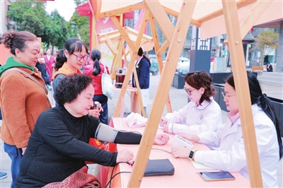 另一邊,活動現場設置的“蜀里銀齡·樂享美好”展示展銷區(qū)、“天府有禮”展區(qū)、適老體驗區(qū),各種特色產品琳瑯滿目;“溫暖孝老區(qū)”,綿陽市中心醫(yī)院、綿陽市中醫(yī)院的義診臺前排起了長隊,一句句叮囑,傳遞著醫(yī)者仁心;一旁的志愿服務點同樣忙碌,免費理發(fā)等便民服務,讓老人們臉上洋溢著幸福的笑容。