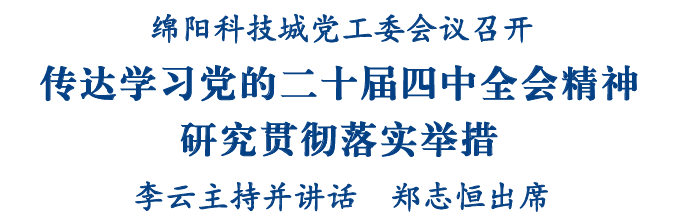 11月2日,綿陽科技城黨工委會(huì)議召開,傳達(dá)學(xué)習(xí)黨的二十屆四中全會(huì)精神,以及中央和省市有關(guān)會(huì)議精神,研究科技城貫徹落實(shí)舉措。市委副書記、市長、科技城黨工委書記李云主持會(huì)議并講話。