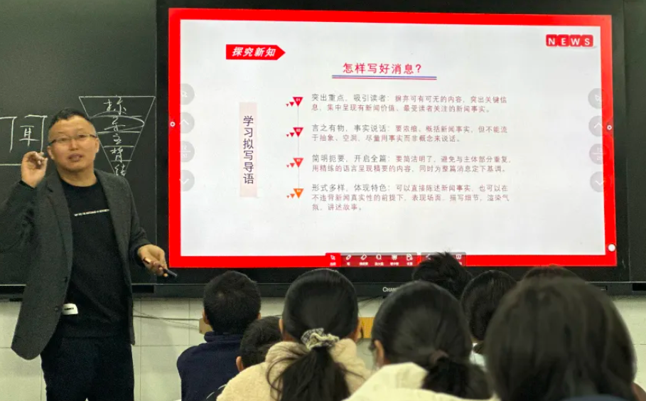 趙亮老師在八年級(jí)三班呈現(xiàn)了一堂結(jié)構(gòu)嚴(yán)謹(jǐn)、內(nèi)容充實(shí)的《新聞寫作》示范課。課堂環(huán)節(jié)緊湊,知識(shí)點(diǎn)層層遞進(jìn),學(xué)生積極參與討論,踴躍回答問(wèn)題?,F(xiàn)場(chǎng)采訪聽(tīng)課教師環(huán)節(jié)氣氛熱烈而有序,學(xué)生新聞寫作成果豐富多樣,佳作頻出,充分體現(xiàn)了學(xué)以致用的教學(xué)效果。