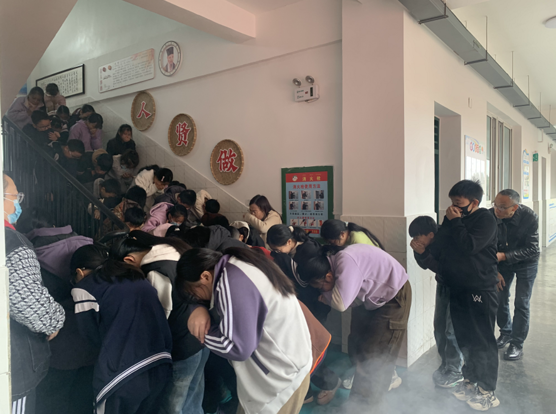 上午10時(shí),消防警報(bào)響起,演練正式開始。各崗位教師迅速到位,沉著指揮。同學(xué)們在老師的帶領(lǐng)下,用濕毛巾等捂住口鼻,彎腰低姿,沿預(yù)定路線快速、有序撤離至操場。整個(gè)過程緊張而不混亂,全校600余名師生僅用不到3分鐘即全部安全抵達(dá)集合點(diǎn),演練達(dá)到預(yù)期效果。