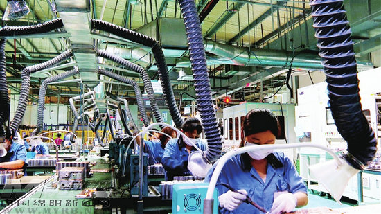 走進(jìn)四川省科學(xué)城久信科技有限公司生產(chǎn)車間,機器運轉(zhuǎn)不停,操作員正全神貫注操作機器加班加點進(jìn)行產(chǎn)品生產(chǎn)。