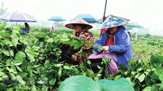 村民忙著采摘毛豆。