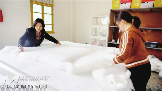經(jīng)過多道工序后,生產(chǎn)出的蠶絲被。 記者 劉鳳君 攝