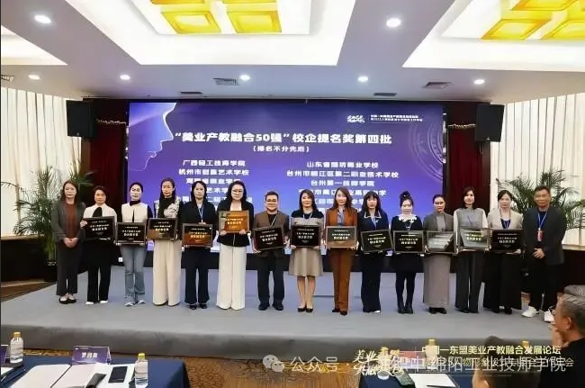 2025年10月30日至11月2日,教育部職業(yè)院校藝術(shù)設(shè)計類專業(yè)教學(xué)指導(dǎo)委員會人物形象設(shè)計專委會工作年會在廣西南寧隆重舉行。江油市職業(yè)中學(xué)校在會上喜獲"美業(yè)產(chǎn)教融合50強"校企提名獎,這是對該校在專業(yè)建設(shè)和產(chǎn)教融合方面取得成果的高度認可。