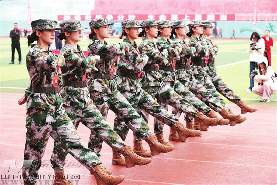 參賽隊(duì)員們精神抖擻、步伐整齊。 記者 胥江 攝