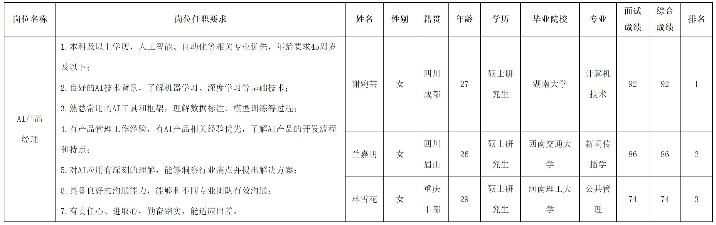 根據(jù)四川長(zhǎng)虹虹微科技有限公司發(fā)布的招聘公告及招聘相關(guān)規(guī)定,現(xiàn)將測(cè)試成績(jī)予以公示。