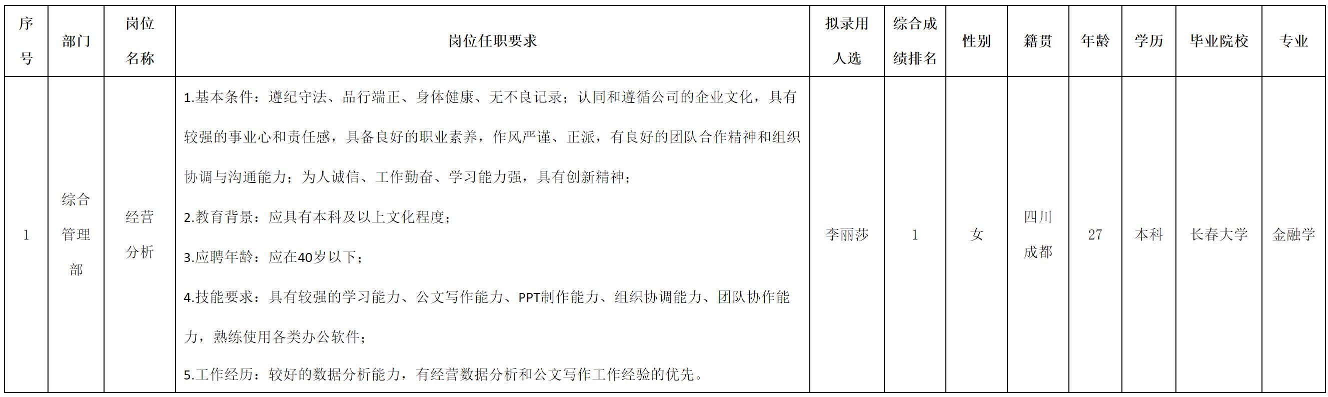 根據(jù)四川長(zhǎng)虹空調(diào)有限公司發(fā)布的招聘公告及招聘相關(guān)規(guī)定,經(jīng)測(cè)試、考察、體檢等程序,擬錄用李麗莎到長(zhǎng)虹空調(diào)工作,現(xiàn)予以公示,具體情況如下:
