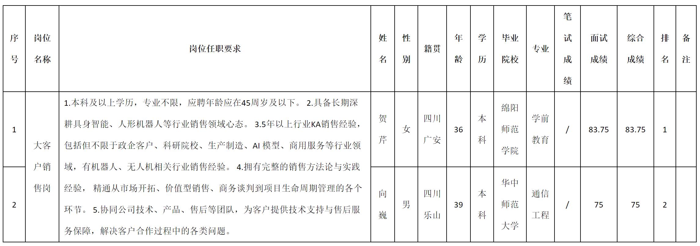 根據(jù)四川九洲投資控股集團(tuán)有限公司軟件與數(shù)據(jù)智能軍團(tuán)發(fā)布的招聘公告及招聘相關(guān)規(guī)定,現(xiàn)將測試成績予以公示。