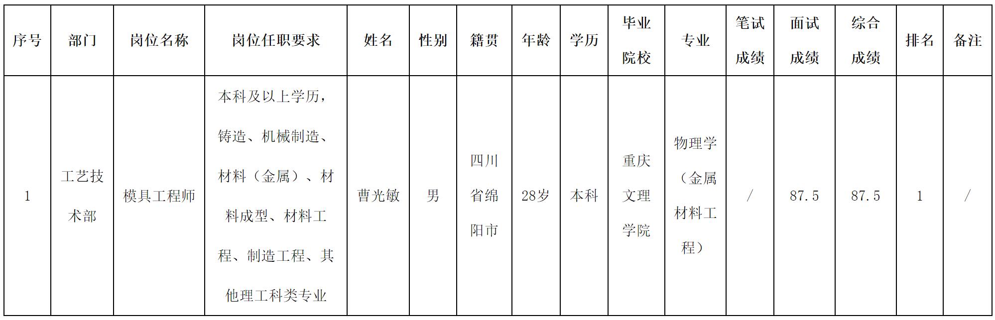 根據(jù)四川波鴻實(shí)業(yè)有限公司發(fā)布的招聘公告及招聘相關(guān)規(guī)定,現(xiàn)將測(cè)試成績(jī)予以公示。
