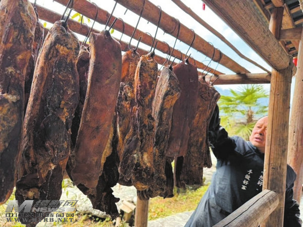 中午,圍坐在民宿的餐桌前,曾珍和朋友們喝著苞谷酒,品嘗由臘肉烹制的美味:臘肉炒蒜苗、臘肉火鍋、臘肉燜飯……一道道以臘肉為特色的農(nóng)家菜讓她贊不絕口,“這邊的整體體驗很棒,風(fēng)景、民宿都很有特色,最讓人難忘的還是這臘肉的獨特風(fēng)味。”
