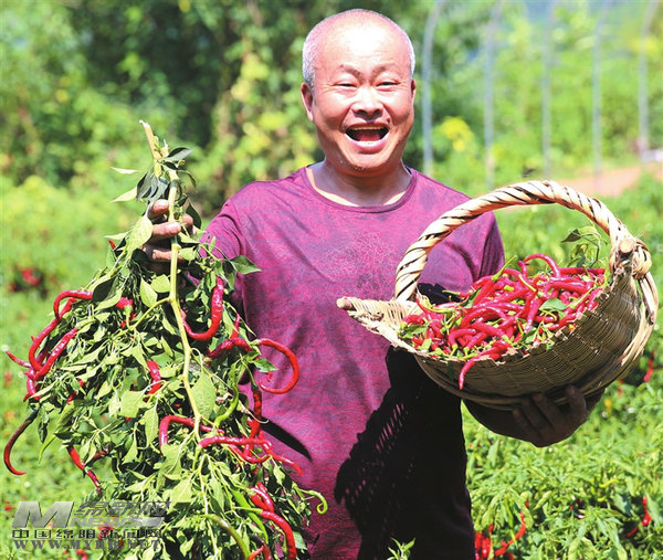 辣椒豐收,鹽亭縣農(nóng)民潘洪林笑開顏。