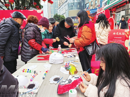 市民在慶新春游園活動中體驗川劇臉譜制作