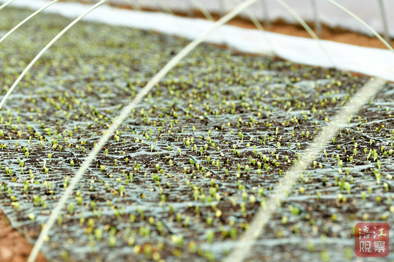 在不遠處的兩座大棚內,瓜農夫妻倆正細心地為剛破土而出的幼苗淋水。今年,他們計劃種植70畝西瓜,十幾天后將雇傭更多的人來栽苗。