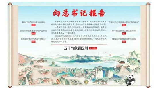 在文字作品中,《向總書記報告萬千氣象看四川》以宏大的視角和細膩的筆觸,全方位呈現(xiàn)了四川在新時代發(fā)展浪潮中的卓越成就,從經(jīng)濟的飛速發(fā)展到科技創(chuàng)新的突破,從民生改善的顯著成果到文化傳承的創(chuàng)新實踐,讓讀者深切感受到四川這片土地的勃勃生機與無限潛力。