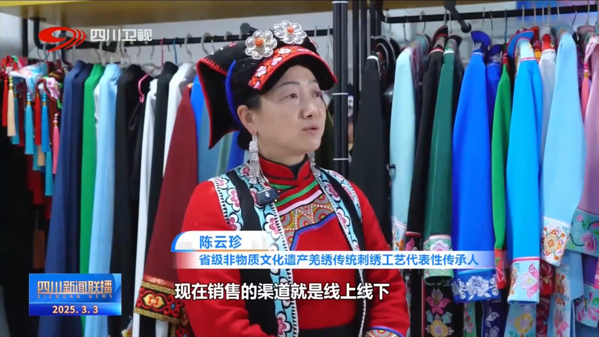 省級(jí)非物質(zhì)文化遺產(chǎn)羌繡傳統(tǒng)刺繡工藝代表性傳承人 陳云珍:現(xiàn)在銷(xiāo)售的渠道就是線上線下,我們一起共同來(lái)傳承這個(gè)文化,不單單走出大山,還想走出全國(guó)乃至于全世界。