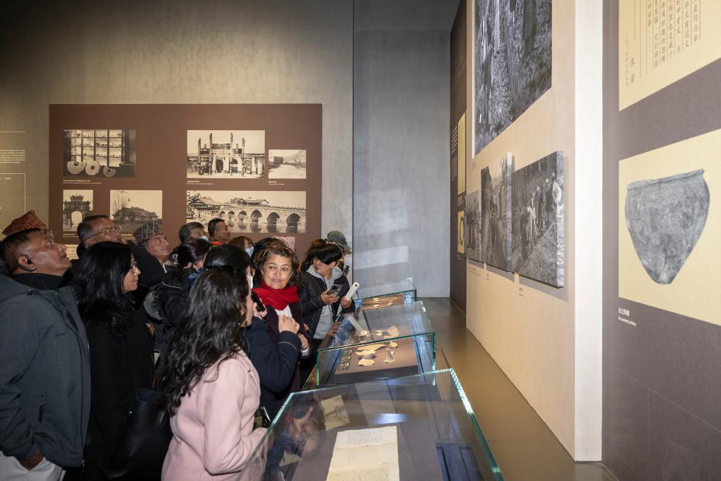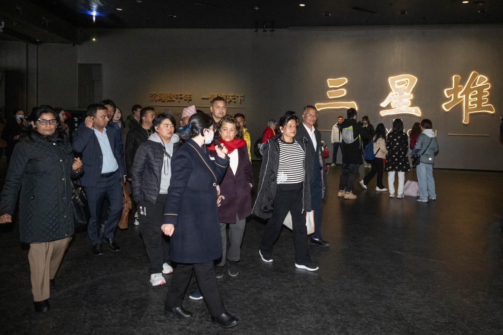 尼泊爾大會(huì)黨干部考察團(tuán)成員在四川省廣漢市三星堆博物館參觀(2月26日攝)。新華社記者 于艾岑 攝