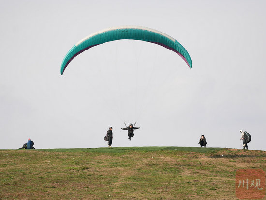 2月15日,成都市錦江區(qū),市民在專業(yè)人員指導下體驗滑翔傘運動。川觀新聞記者 韋維 攝