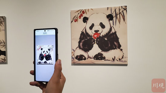 3月1日,“AI漩渦數(shù)字藝術(shù)展”在成都廣匯美術(shù)館啟幕。“AI漩渦數(shù)字藝術(shù)展”現(xiàn)場所展示的42組一百多幅繪畫作品都由AI輔助作者完成。通過手機掃描,畫上的熊貓“動”了起來。川觀新聞記者 韋維 攝