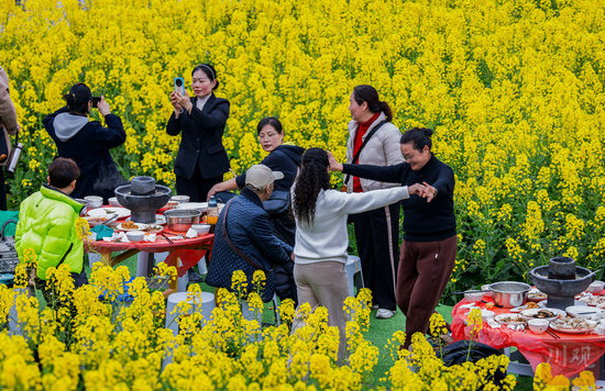 當下,春日消費熱潮勢頭正盛。身邊是搖曳的花海、面前是沸騰的火鍋,和親友一起在天府農(nóng)博園里吃頓“花田火鍋”;廣安市廣安區(qū),萬畝油菜花海之上,游客乘坐直升機,從百米高空俯瞰金色畫卷······鄉(xiāng)村農(nóng)文旅融合消費場景不斷煥新。不少代表委員認為,加快新型消費發(fā)展,也要重視農(nóng)村這個潛在的巨大市場。