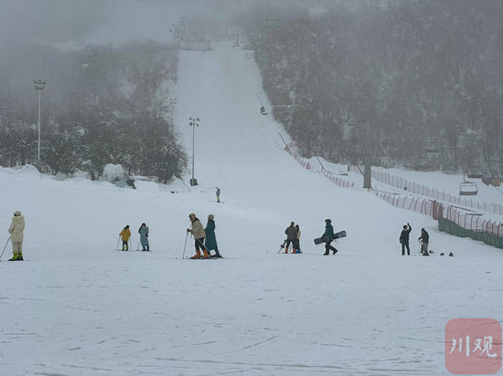 2月16日下午,市民游客在成都西嶺雪山滑雪場體驗滑雪的樂趣。川觀新聞記者 李強 攝