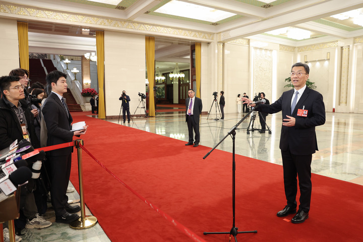 3月5日,第十四屆全國(guó)人民代表大會(huì)第三次會(huì)議首場(chǎng)“部長(zhǎng)通道”集中采訪(fǎng)活動(dòng)在北京人民大會(huì)堂舉行。這是教育部部長(zhǎng)懷進(jìn)鵬接受媒體采訪(fǎng)。新華社記者 呂帥 攝