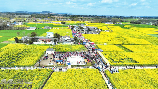 在秀水鎮(zhèn)優(yōu)質(zhì)糧油現(xiàn)代農(nóng)業(yè)園區(qū),金黃的花海隨風(fēng)搖曳,與川西北特色村落相互映襯,游客漫步其間,宛如一幅絕美的春日畫卷?;顒蝇F(xiàn)場,《蓮蕭打出幸福來》《不忘初心》等原創(chuàng)文藝節(jié)目與非遺展演相映成趣,春耕體驗區(qū)、風(fēng)箏競技場等沉浸式項目人氣爆棚,帶動溫泉康養(yǎng)、精品民宿、生態(tài)餐飲等業(yè)態(tài)全面升溫。