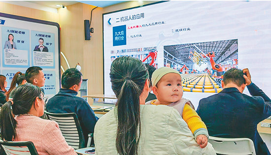 不同的時(shí)代,一樣的精神。40多年后的今天,記者同樣在深圳市龍華區(qū)福城街道章閣社區(qū)的“AI夜校”課堂上看到,正在開展的工業(yè)機(jī)器人基礎(chǔ)操作培訓(xùn)課上,一名女士懷抱孩子認(rèn)真聽課。