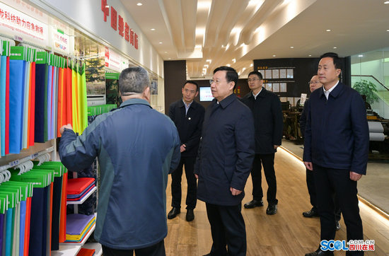 3月17日,省委書記、省人大常委會主任王曉暉到位于井研縣的四川意龍科紡集團(tuán)公司調(diào)研,詳細(xì)了解產(chǎn)品研發(fā)、工藝創(chuàng)新、市場拓展等情況。