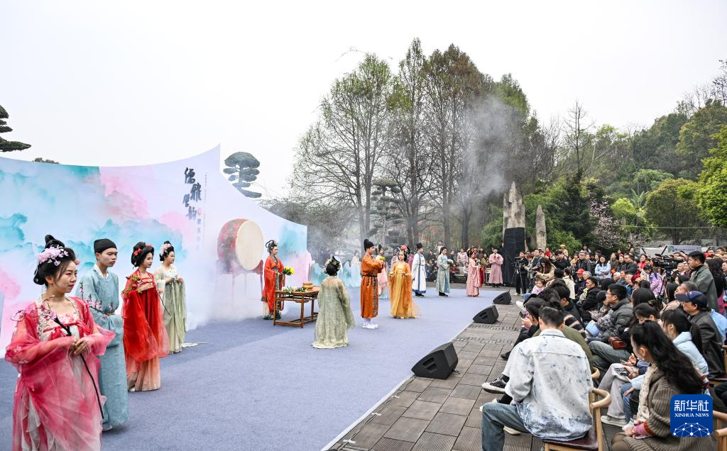 這是3月22日在重慶璧山秀湖公園拍攝的“儒雅璧韻·璧玉唐禮”傳統(tǒng)文化禮儀展示活動現(xiàn)場。