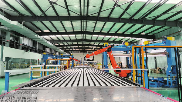 近日,記者走進四川虹科創(chuàng)新科技有限公司的生產(chǎn)車間,整潔清爽的廠區(qū)環(huán)境映入眼簾,伴隨著機器輕微的“嗡嗡”聲,智能化生產(chǎn)線正高效運轉(zhuǎn),靈巧的智能機器人揮舞著機械“手臂”,每天都要精準完成3萬余平方米玻璃的上片、下片任務。
