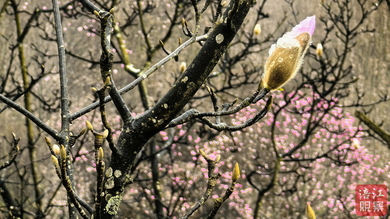 這場十年難遇的奇觀背后,藏著大自然的精妙設計。辛夷花特有的蠟質花瓣和抗凍生物酶,讓它們在-5℃環(huán)境中仍能保持生機。