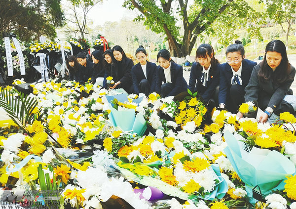 4月3日,在綿陽市烈士陵園,機關(guān)幼兒園的老師們向烈士敬獻鮮花。