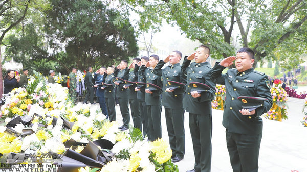經(jīng)開區(qū)干部職工、退役軍人代表、少先隊員代表來到綿陽市烈士陵園,在莊嚴肅穆的烈士紀念碑前整齊列隊,齊唱中華人民共和國國歌。隨后,全體人員整齊列隊,通過集體默哀、敬獻花籃、瞻仰烈士紀念碑等形式表達對革命先烈的深切哀思與崇高敬意。
