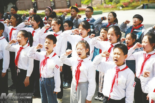 成綿路小學(xué)的學(xué)生重溫入隊誓言