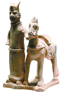 在該博物館內(nèi)的“宋人風(fēng)采”展出區(qū)域,出自宋代的各個(gè)陶俑吸引了一大批市民和游客的目光。記者看見,“灰陶執(zhí)扇侍俑”身著長袍,胸前環(huán)抱著形似花朵的扇子,再配上“一臉嚴(yán)肅”的表情,看上去自帶“萌感”。“男牽馬俑”的泥質(zhì)也為灰陶,整體造型為一位馬夫頭戴冠,上身穿圓領(lǐng)窄袖衣,立于馬一側(cè),一手牽馬,一手叉腰;一匹馬站立,雙目凝視遠(yuǎn)方,背部有鞍飾。一人一馬,配合默契,頗有“最佳拍檔”風(fēng)范。