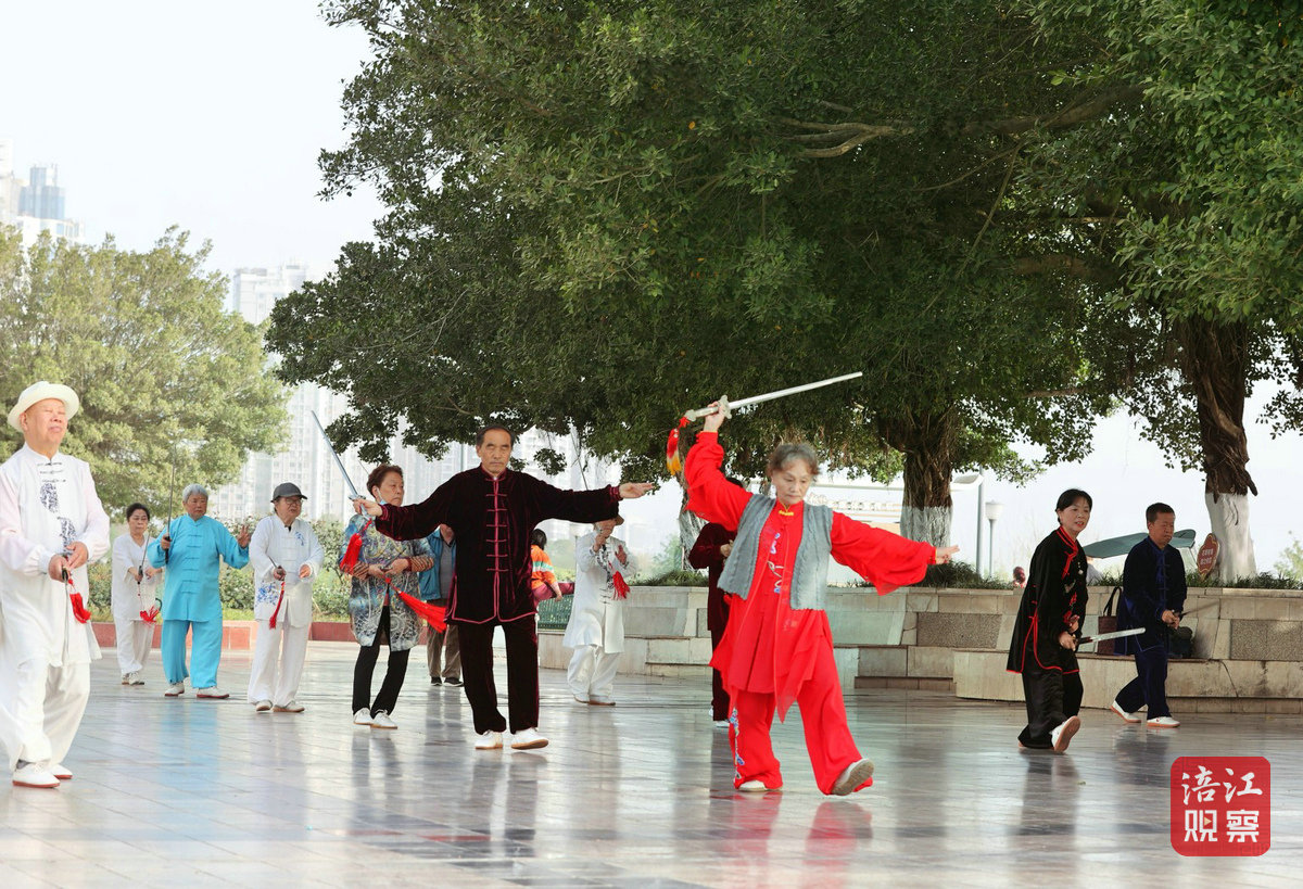 公園里,打太極拳的老人緩緩?fù)普?/p>