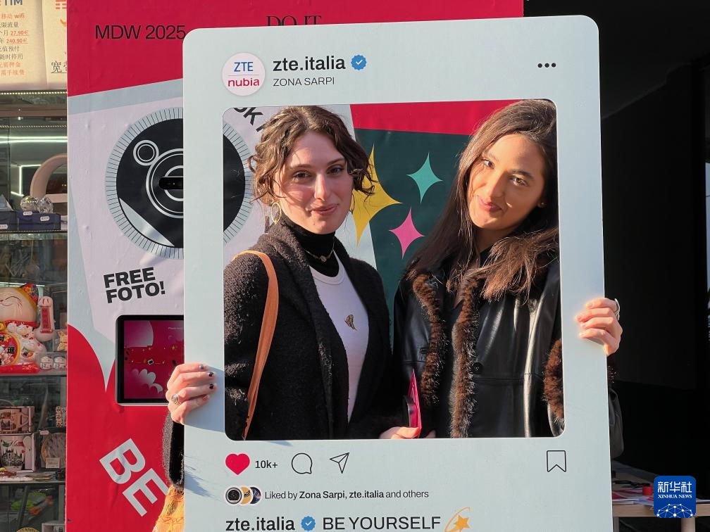 4月7日,兩名游客在意大利米蘭設(shè)計周中國周的文化裝置前合影。新華社發(fā)(米蘭設(shè)計周中國周主辦方供圖)