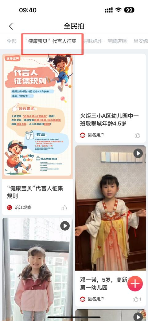 三、找到“健康寶貝代言人”活動入口,上傳視頻。