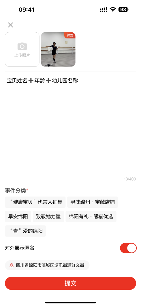 錄制寶貝“自我介紹+才藝展示”視頻(唱歌、跳舞、講故事、背古詩……才藝不限,萌即正義?。┥蟼髦?ldquo;涪江觀察APP”拍拍專區(qū)“健康寶貝代言人征集”,正文標注寶貝姓名+年齡+學校名稱。
