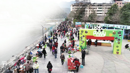 位于平武河堤的野菜集市