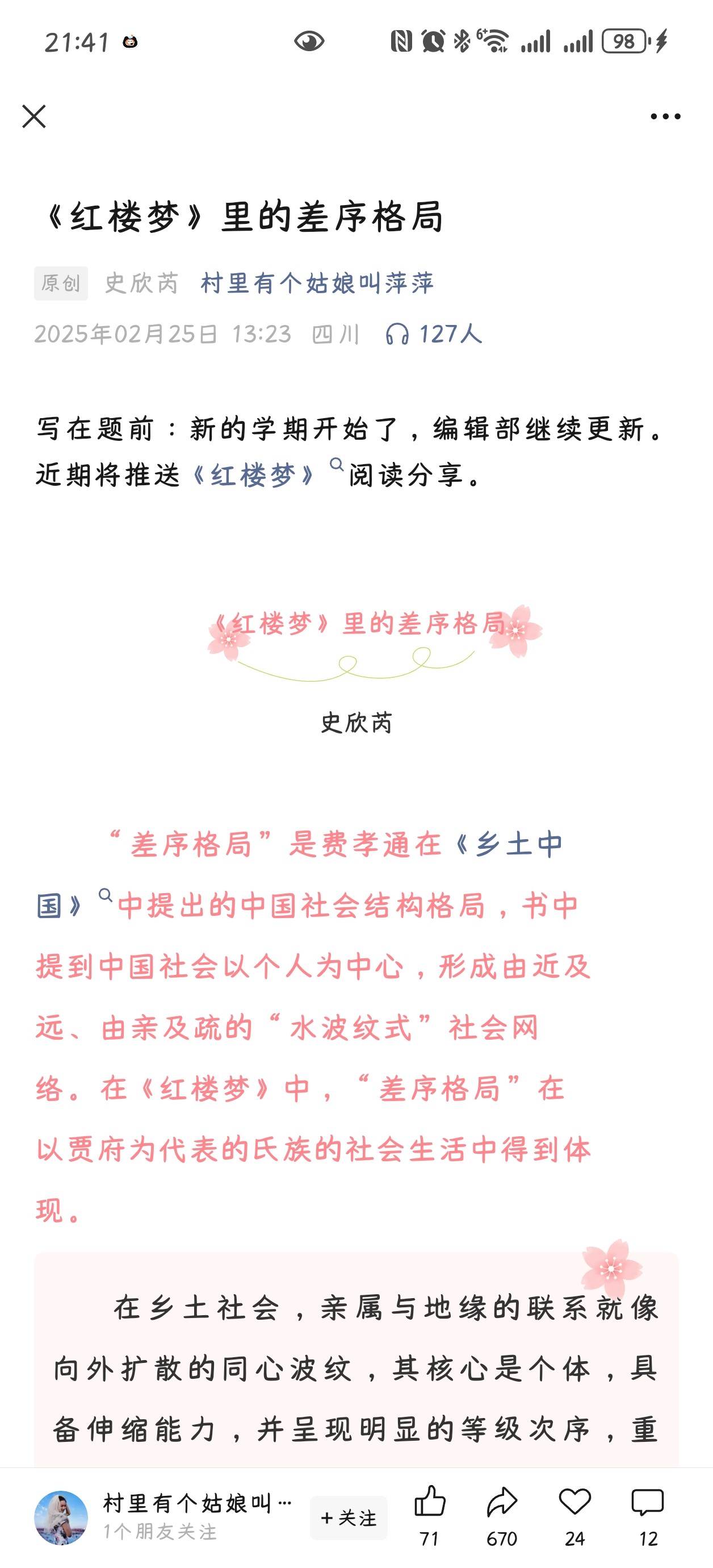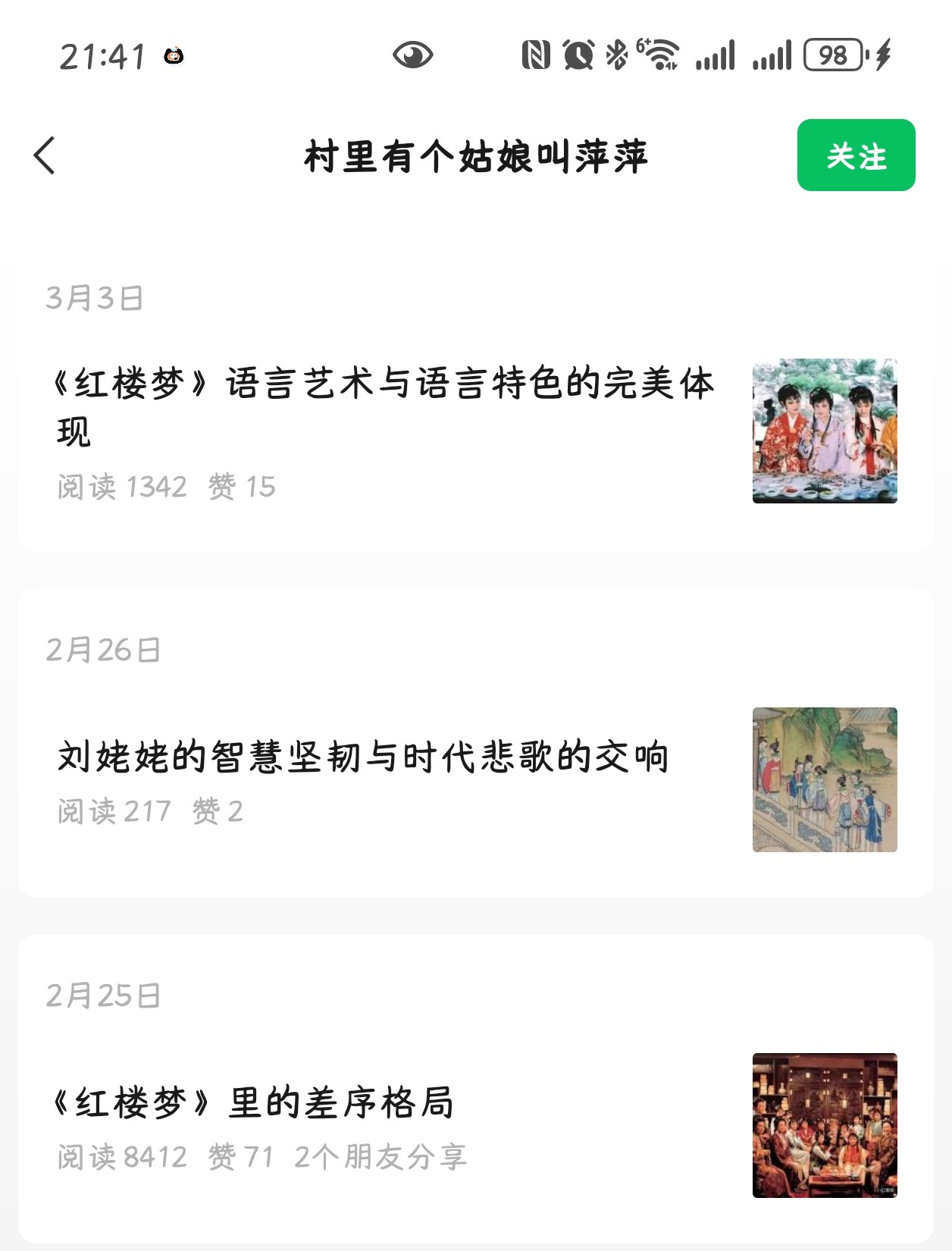 參賽指導(dǎo)老師林春萍回憶起史欣芮創(chuàng)作過(guò)程時(shí)仍難掩激動(dòng):“接到比賽通知次日,她就發(fā)來(lái)提綱,一周后交稿,不到兩小時(shí)一氣呵成,連標(biāo)點(diǎn)都極少改動(dòng)。”在林老師眼中,史欣芮的“天才”背后是日復(fù)一日的積淀:班級(jí)公眾號(hào)“村里有個(gè)姑娘叫萍萍”里,她的《〈紅樓夢(mèng)〉里的差序格局》曾獲得8000+閱讀量;班上每月會(huì)印制一本學(xué)生散文隨筆集,作為主編的史欣芮文學(xué)造詣早已初見(jiàn)端倪:她的文字總能以小見(jiàn)大,將日常觀(guān)察升華為對(duì)文化的思考。