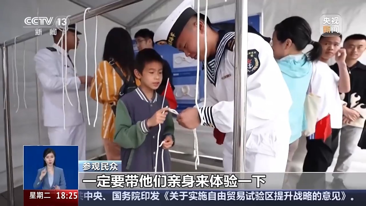 參觀民眾:我覺得國防教育從娃娃抓起,作為家長我們除了日常給他科普一些海軍知識,國防知識外,像這樣的活動一定要帶他們親身來體驗一下,海軍節(jié)開放日活動的體驗感、參與感真的挺好的。