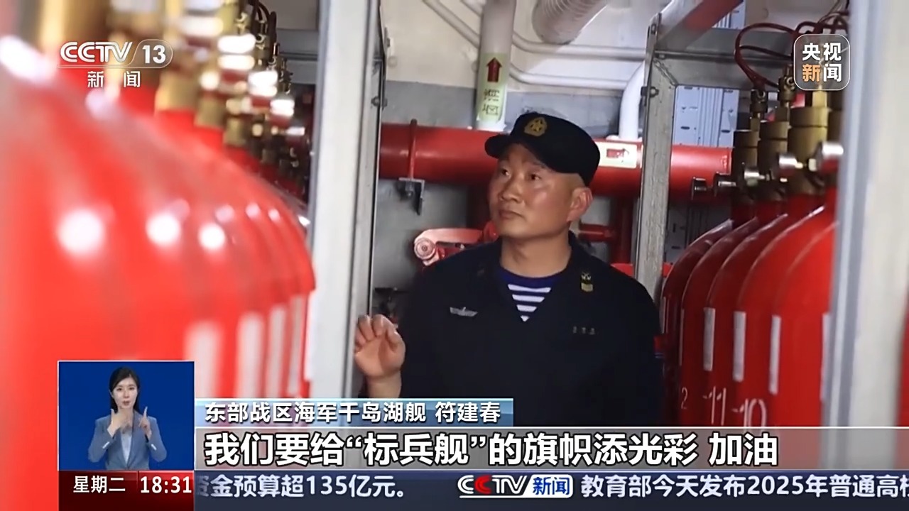 東部戰(zhàn)區(qū)海軍千島湖艦 符建春:第一個人員的素質(zhì)能跟得上,第二個人員的維修的能力能跟得上,雖然我們的艦比較老,但是人員的技術(shù)能力能維持艦正常運行;我們還有個“標兵艦”的信念,因為“標兵艦”是我們的信念,我們要給標兵艦的旗幟添光彩、加油。